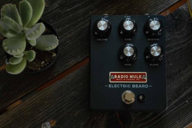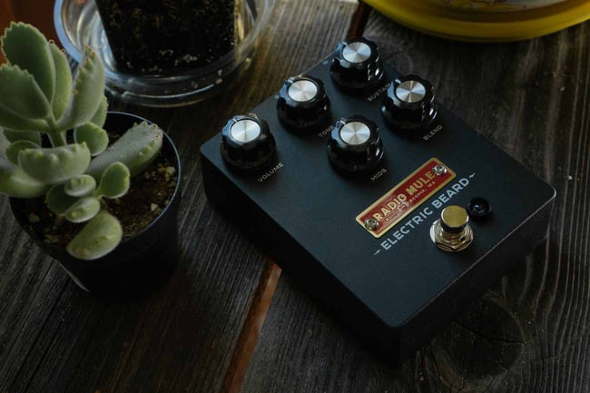 The Electric Beard is a parallel twin fuzz that merges a modified, Black Russian Muff style circuit with a classic, Super Fuzz style octave up fuzz. Blend in as much or as little of each signal as you like to find your perfect tone.